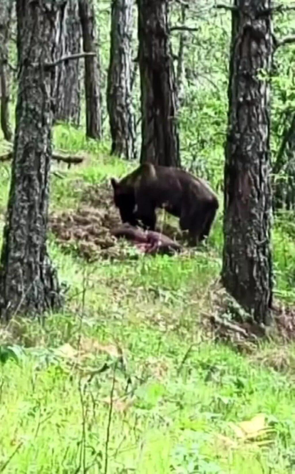 Daday ilçesi Selalmaz köyünde mantar toplamak için ormana giden Anahtar Parti Daday İlçe Lideri Serkan Pehlivan, ayı seslerini duydu. Seslere hakikat yönelen Pehlivan, ayının avladığı yaban domuzunu yediğini ve saklamak için toprağa gömdüğünü gördü. Pehlivan, o anları cep telefonuyla görüntüledi.